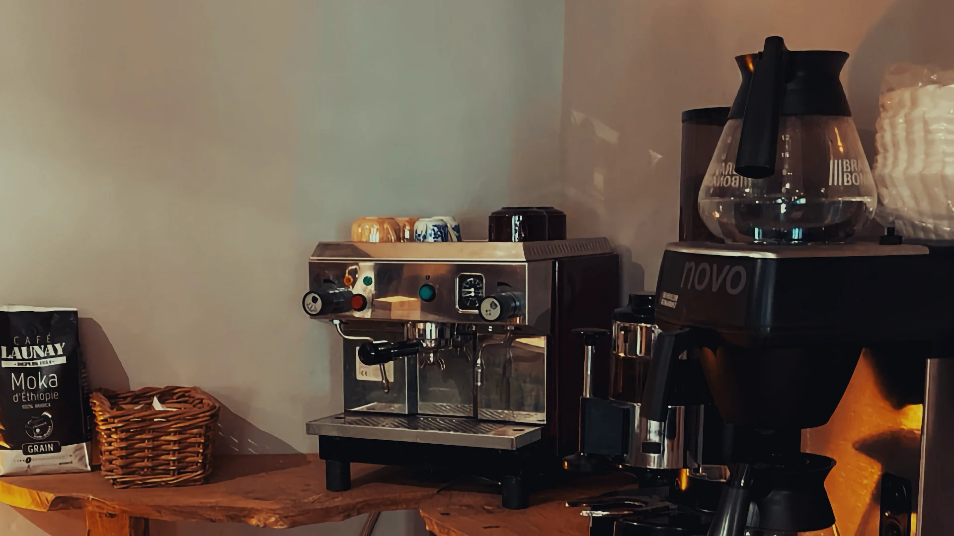 The price for a three-course lunch, including wine and coffee, is €35 per person.